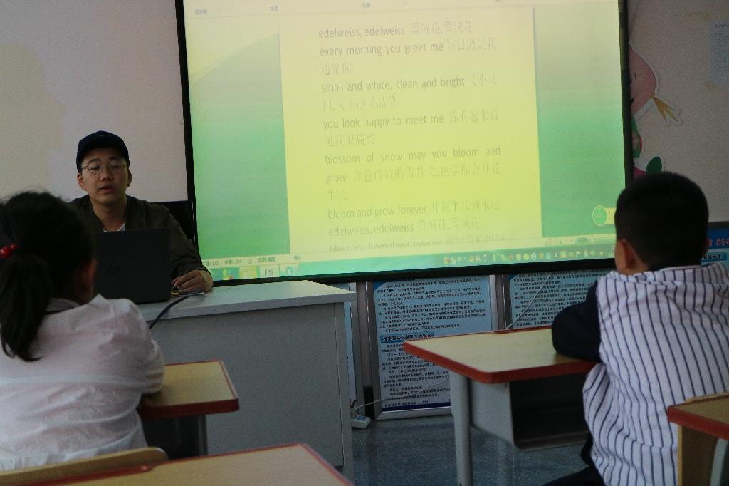 4月26日下午,“四点半工程”首次亮相。伴随着优美的背景音乐,2015级英语专业高瑞萱同学首先为社区的孩子们唱了一首《雪绒花》,孩子们被歌声深深地吸引了。随后,赵晶晶和高瑞萱又逐字逐句地带领孩子们学习歌曲里面的单词和句子。之后,刘国、汪楚晴、乔燕和刘学鹏等同学还为年龄较小的孩子一对一地进行了辅导。这种新颖的寓教于乐的学习方式受到了学生和家长的欢迎和称赞。