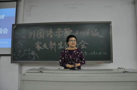 9月8日下午,外国语学院在蒲河校区方圆楼201召开2016级新生入学指导暨家长见面会,外国语学院院长周洁教授、党委副书记兼副院长李海波、团委书记赵跃、本科生辅导员王晗、崔振宇出席了此次会议,会议由王晗主持。