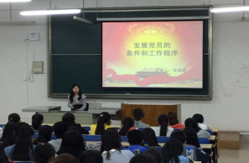 张晶晶通过回顾党的九十五年的奋斗历史,向新生宣扬了爱党爱国精神,并详细解读了大学生党员的选拔标准、申请流程、入党过程等内容,加深了同学们对中国共产党的认识,提高了同学们的思想觉悟。